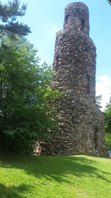 Datum poslední návštěvy: 6.července 2017 Popis: Neobvyklá rozhledna se nachází na Krásenském vrchu (777 m) ve Slavkovském lese. Po obvodě této kamenné věže se jako zužující se spirála vine vnější schodiště. Základna je 11 m široká, zatímco vyhlídková plošina ve výšce 25 m má v průměru necelé 3m. Byla postavena jako nouzová stavba ke snížení nezaměstnanosti v době hospodářské krize v letech 1933–35 dle návrhu místního sochaře Willyho Russe a architekta Fritze Hoffmanna. Inspirací byl minaret v mezopotamské Sámaře. Do stavby se vedle 25 nezaměstnaných zapojilo i celé město Krásno a jeho obyvatelé. Obec dala k dispozici bezplatně pozemek a dřevo, majitelé nákladních aut zajistili dopravu písku a cementu. Kamenná suť použitá na stavbu se těžila přímo na místě. V roce 1997 byla provedena rekonstrukce a okraj vyhlídkové plošiny byl osazen keramickými destičkami, které znázorňují výhled do kraje. (Zpracováno Petrou, NI)
